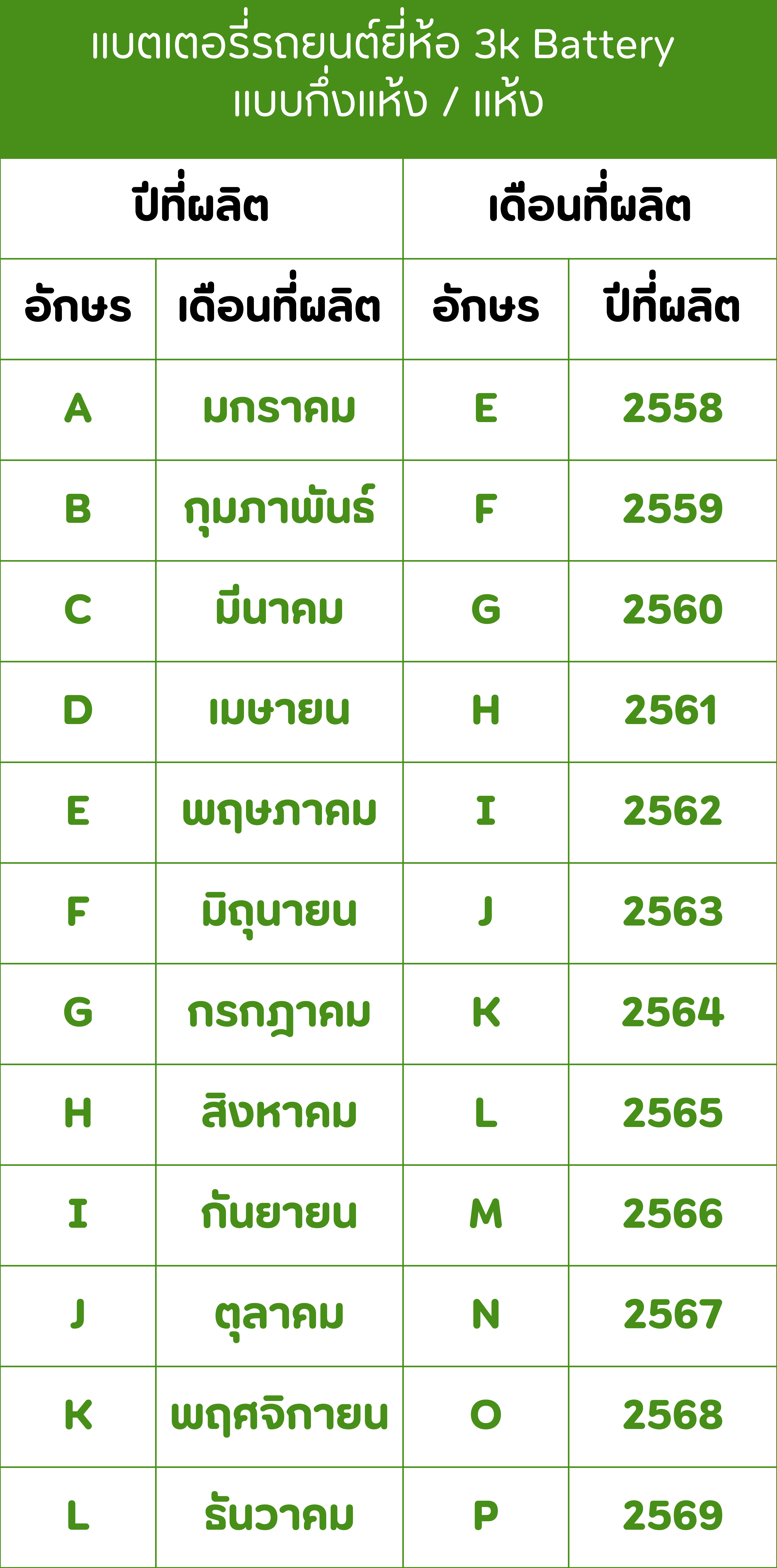 วิธีดู CODE วันเดือนปีที่ผลิตแบตเตอรี่รถยนต์ 3K BATTERY
