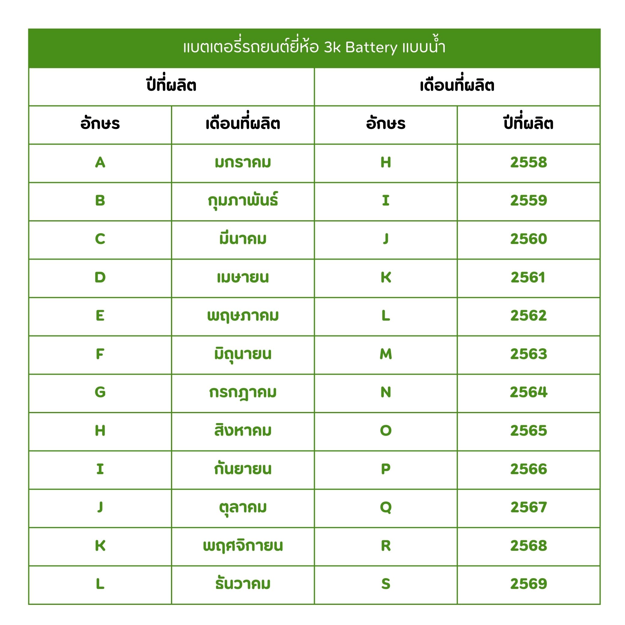 ใครสายลุย ใช้แบตน้ำรุ่นดั้งเดิม รหัสปีจะใช้อีกชุดตัวอักษรนะครับ อย่าจำสลับกันเด็ดขาด! รหัสเรียงแบบนี้: